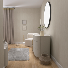 - Palette de Couleurs : Des tons doux et neutres, comme le beige et le taupe clair, ont été choisis pour favoriser une atmosphère tranquille tout en préservant une élégance raffinée.