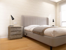 - La commode et les tables de nuit ont été dessinées avec la même rigueur que les menuiseries encastrées : façades affleurantes, joints creux, continuité du veinage. Leurs proportions ont été optimisées pour maintenir une clarté spatiale, tandis que leurs surfaces offraient un jeu subtil entre textures et reflets.
